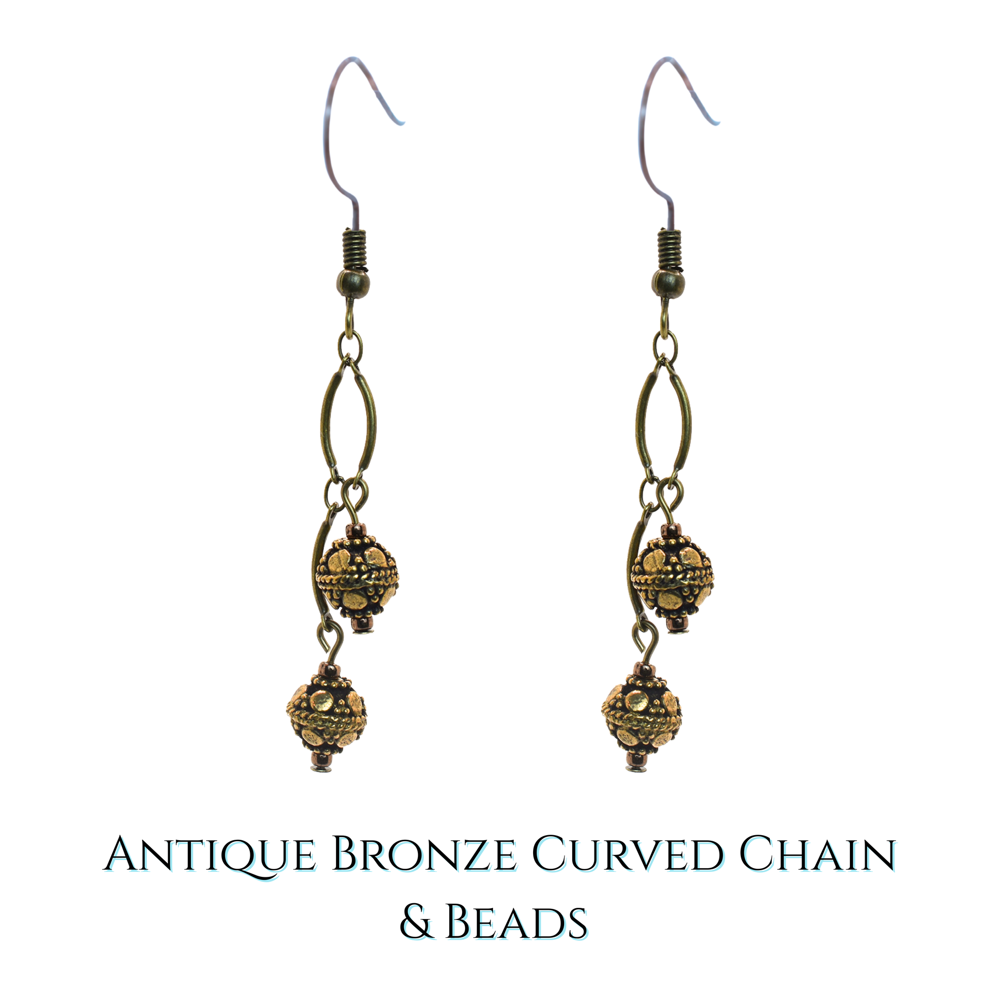 Antique Bronze Curved Chain Bead Earrings