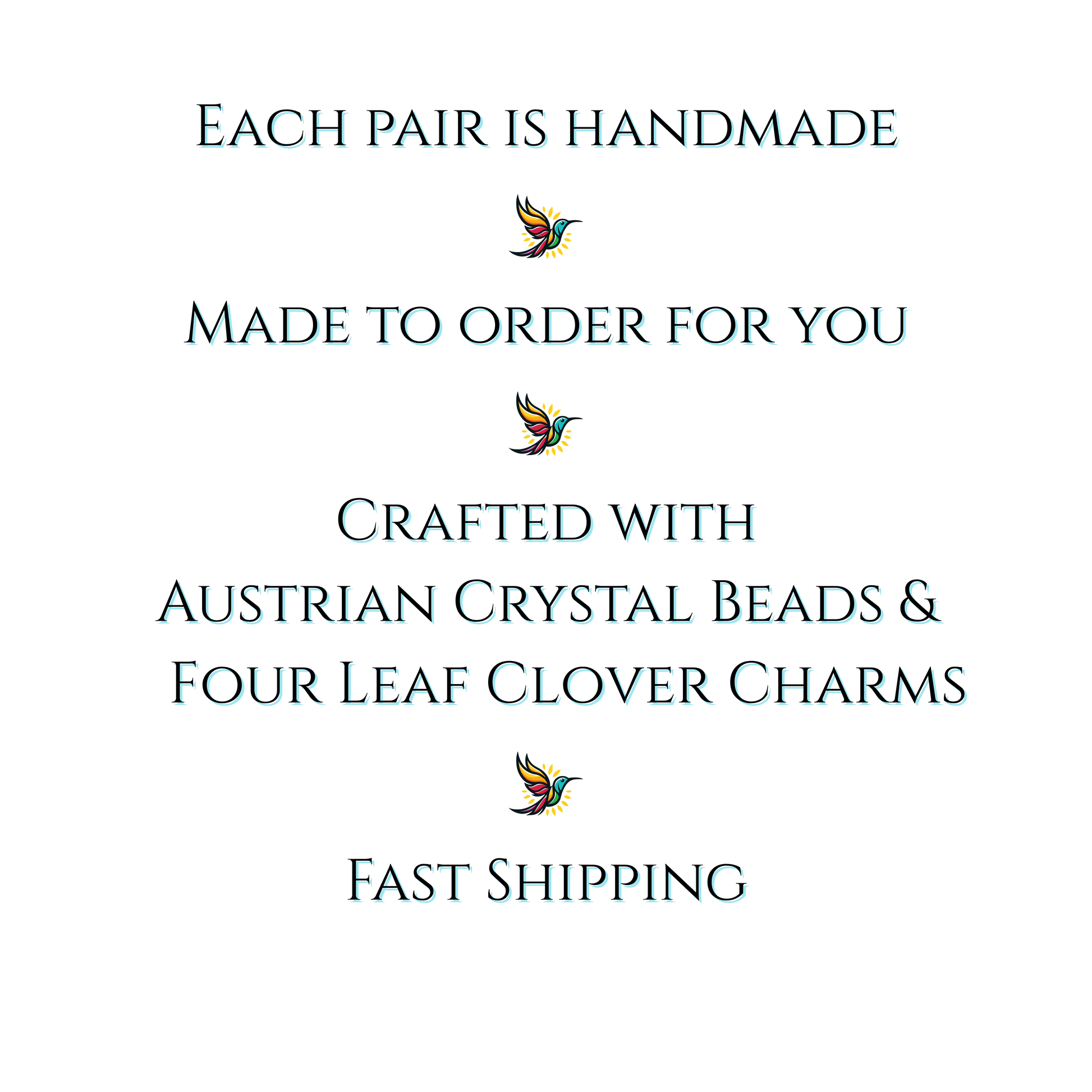 Add a little luck and sparkle with these handmade birth month earrings from Sunbird Jewelry. Featuring a vibrant Austrian crystal and a detailed four-leaf clover charm, these earrings blend meaning and beauty. Perfect as a lucky charm gift, birthday jewelry, or a unique touch of Irish-inspired elegance. Lightweight and joyful—just like your style. 3.8 cm (1.5 in) long. These earrings will arrive in a Sunbird Jewelry box.