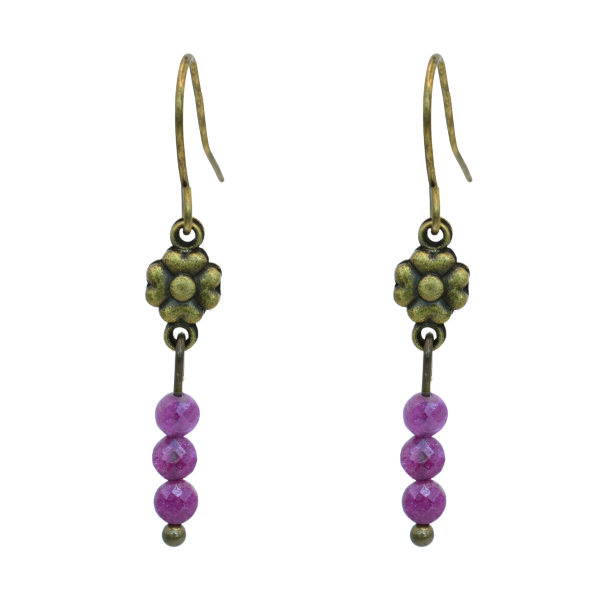 July Birthstone Antique Bronze Flower Earring with Ruby Bead